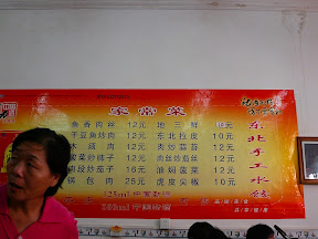 Neben uns nehmen drei ältere chinesische Damen Platz. Wir trinken ja Mineralwasser, aber irgendwie ist heisses Wasser (einfach nur heisses Wasser, von wege Tee!) hier das Getränk der Wahl. Wenn beim Chinesen das Wasserglas leer ist und er es nachgefüllt haben möchte, dann fragt er (oder in diesem Falle sie) nicht etwa die Bedienung höflich ob sie dies tut. Nein, wenn man über 60 und Chinesin ist, dann brüllt man etwas der vorbeihuschenden Bedienung zu und klopft mit dem leeren Glas energisch auf den Tisch. Ich hab mich vor Lachen fast verschluckt. Für 45 RMB wird man zu zweit schön satt und ist anschliessend auch nicht mehr durstig. Lecker war's! Das müssen wir öfters machen.