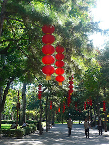 Der Chinese macht ja gerne frühmorgens Taichi und Qigong, tanzt auch schonmal Tango um sich fit für den langen Arbeitstag zu machen. Hier im Park kann man auch noch zwei Kletterwände, und zwar nicht die Kleinsten, finden. Ausserdem gibt's mal wieder eine Ansammlung von Fitnessgeräten, die auch hier und da in der Stadt zur freien Verfügung rumstehen.