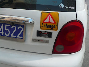 Westliches ist hier in China schwer angesagt. Auch bei Autoaufklebern. Würd ja auch nicht so, dass es jeder versteht, auf mein Nichtfahrenkönnen aufmerksam machen wollen. *grins*
